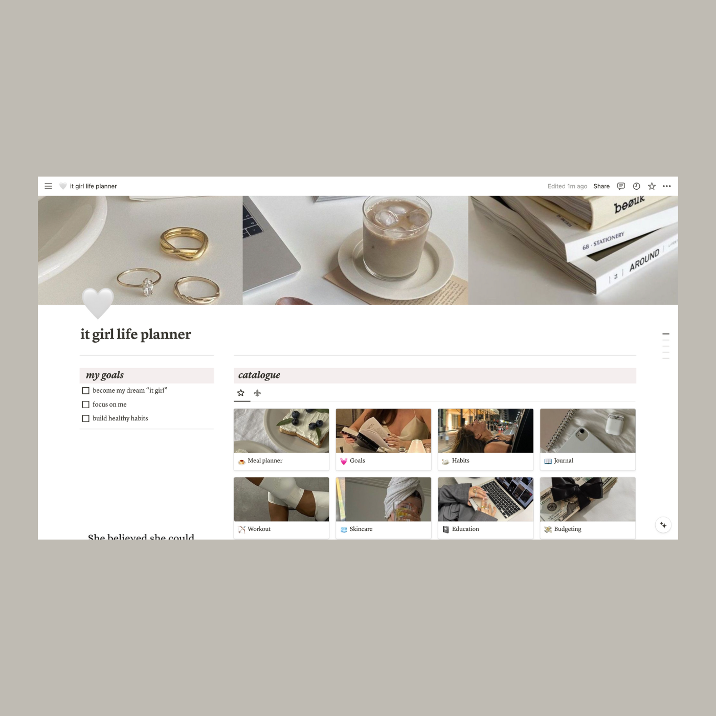 Meet the It Girl Life Planner Template—the ultimate tool for transforming your planning and productivity into an art form. Carefully designed for the busy multitasker, this practical aesthetic life planner is perfect for those looking to inspire and achieve their vision!